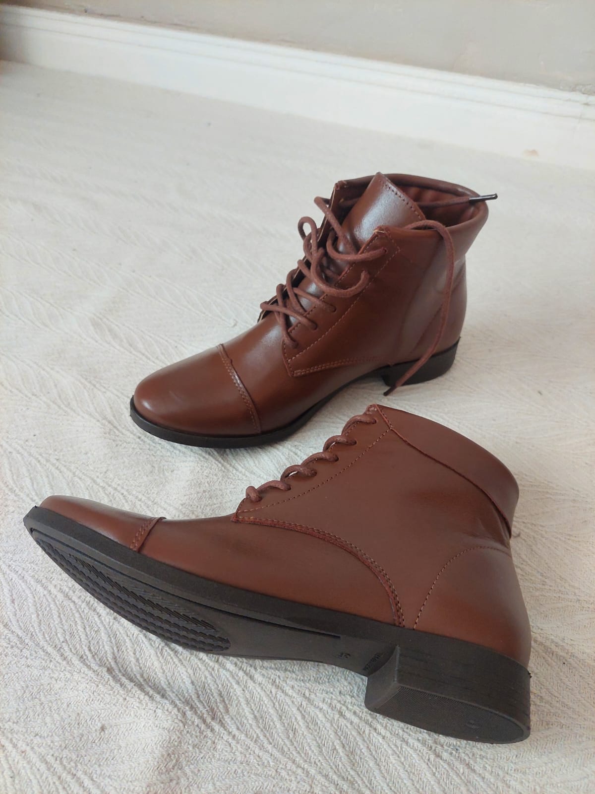 Toda em couro a bota no estilo coturno tem bico arredondado com costura e gravata na borda do cano deixando o modelo mais feminino, com cadarço e palmilhas confortaveis, alem da sua forração em tecido proporcionando conforto e durabilidade.