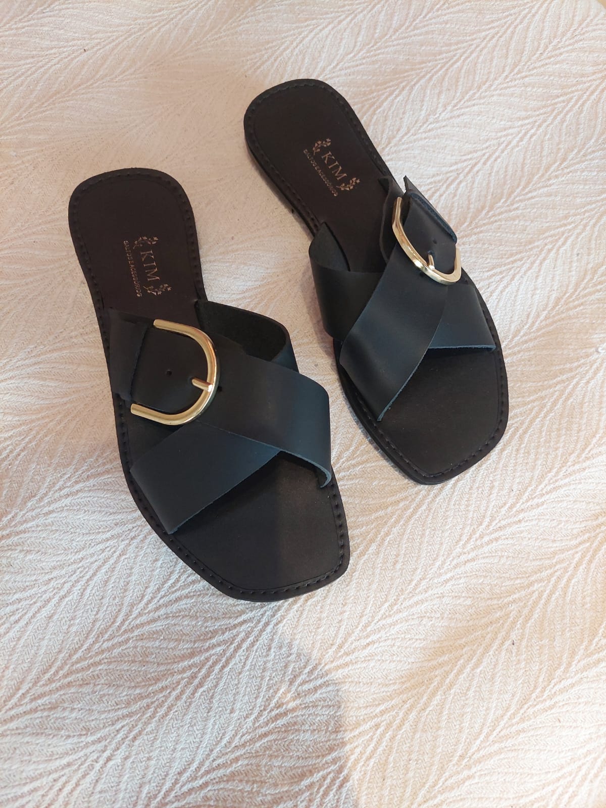 Uma rasteirinha cheia de estilo, ela tem suas tiras em x com fivela dourada na mesma largura da tira deixando ela estilizada,
