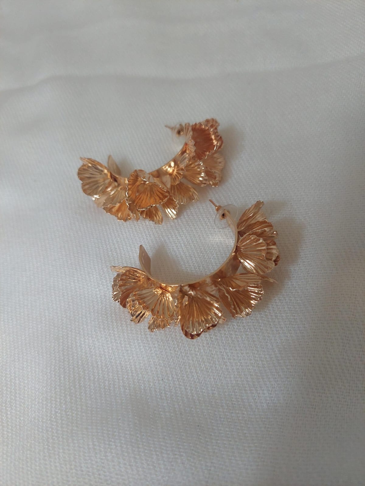 modelo em formato ARGOLA DE CONCHAS com tamanho de 6cm de altura e 4,5cm de largura.
