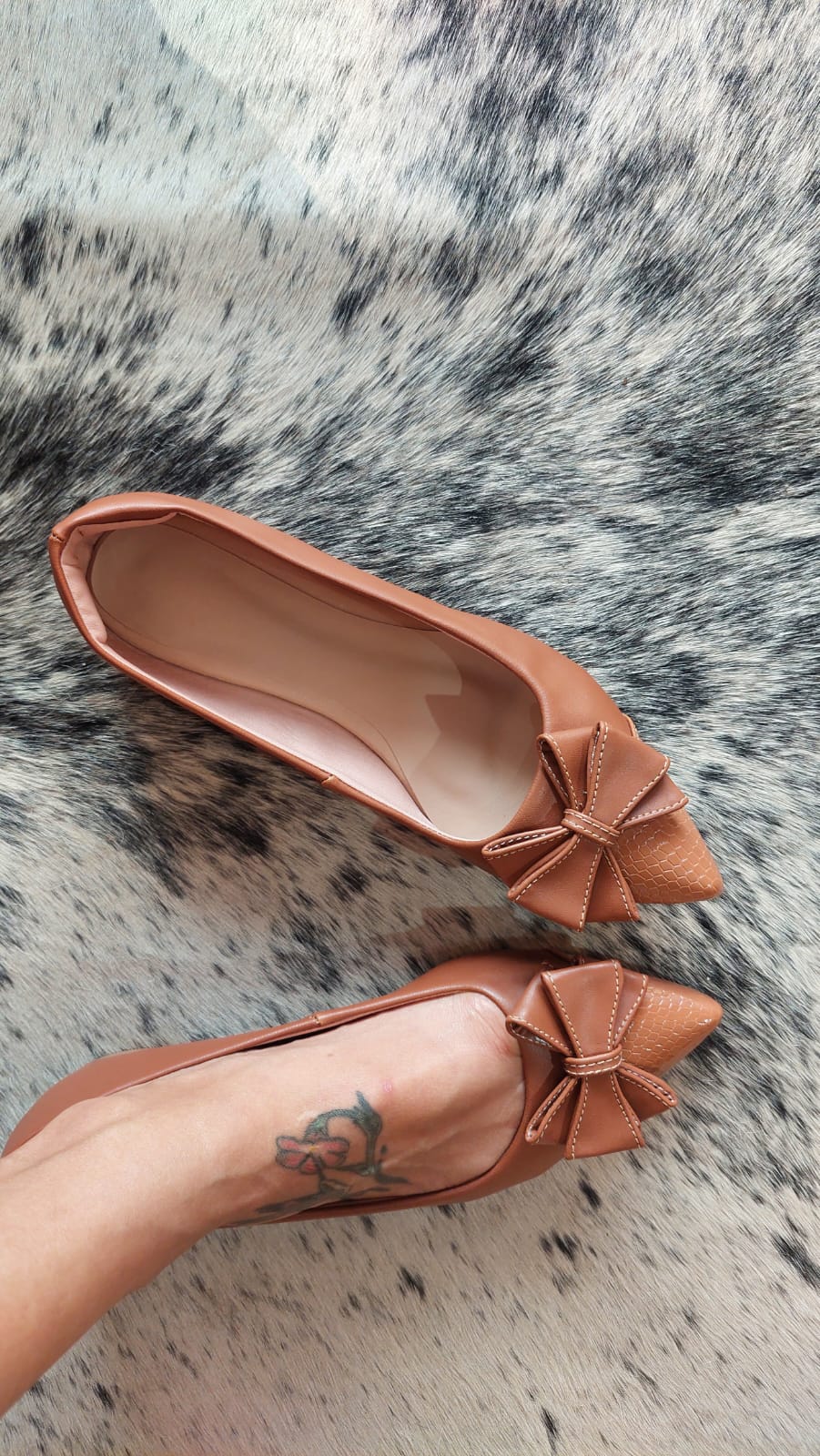 Ela tem a composição do napa liso com o Snake, a combinação que fico perfeita com esse Maxi laço, com um toque de delicadeza com o fashionismo. Ela tem bananinha no calcanhar para não machucar, palmilha confort forro em cacharrel, leve e bem flexível.